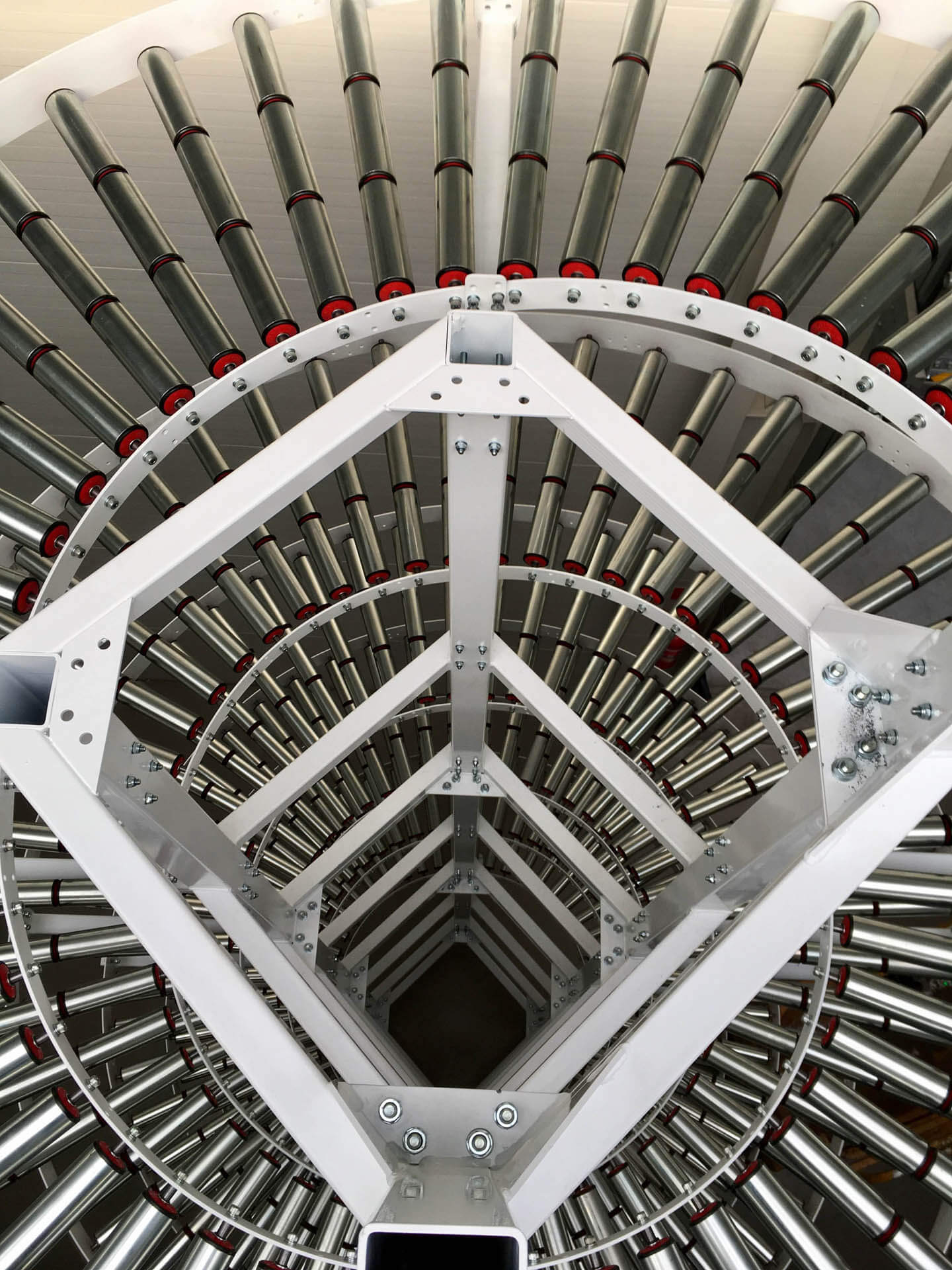 Skladové regály s válečkovou konstrukcí jsou zařízeními, ve kterých jsou nákladové jednotky umístěny na válečkových tratích pod mírným úhlem – zboží se tedy samo pohybuje na základě gravitačních sil. Tyto instalace mohou fungovat jak v systémech FIFO (First In – First Out), tak LIFO (Last In – First Out).